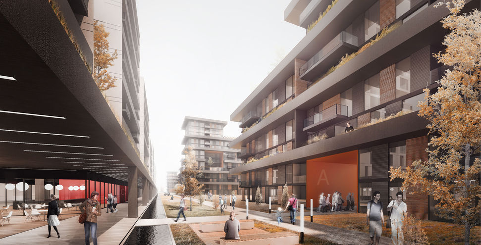 urban renewal From the perspective of the physical environment, the most important problem that stands out in most of the existing urban transformation examples is that the planning is done on a parcel basis and the relationship of these parcels with the city remains in the background. In many cases, in areas subject to urban transformation, the economic return rather than the quality of the spaces created is prioritized. Repeated high density has led to the emergence of areas disconnected from the city. While the land of Çanakkale social housing area, which is the subject of urban renewal, is discussed, the City and the spatial dynamics it contains are highlighted as the basis of this transformation. In this way, it is aimed to ensure the sustainability of urban renewal. These conceptual determinations directly affected the planning of the land. Elements that make up the city, such as streets, courtyards and squares, have found a direct place in the open space setup of the project. Creating a gated community was avoided and pedestrian-oriented public areas were created. The project area is considered as an extension of the commercial and cultural activity areas planned around Çanakkale city center and Sarıçay. The ground level is kept permeable thanks to the streets running along the north-south, and east-west axes. Pedestrian access to the area is provided from these streets.